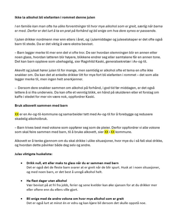 Dette er en tekst som kan brukes som nettsartikkel på kommunens hjemmeside.